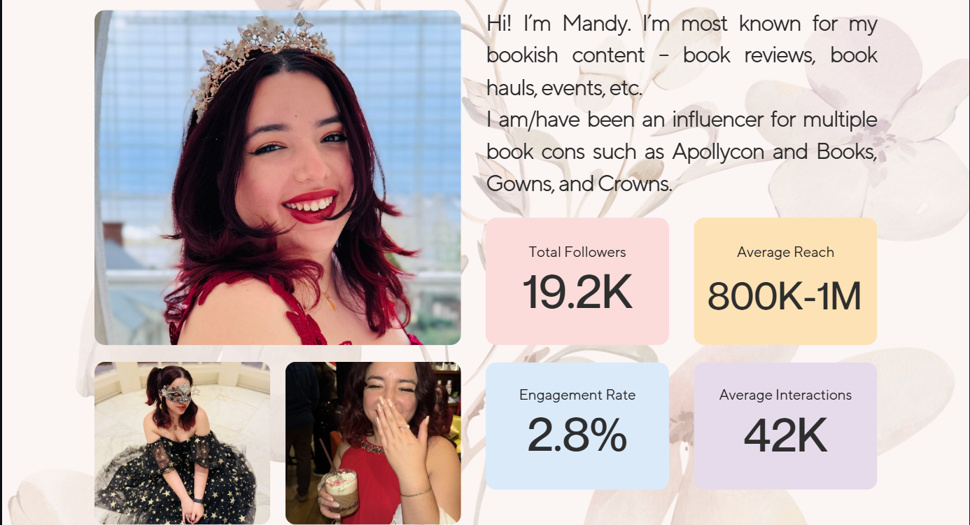 Lead Content Creator, @mandyisreading_; managing the production of reviews, event coverage, and trend-based short-form video content since 2019.