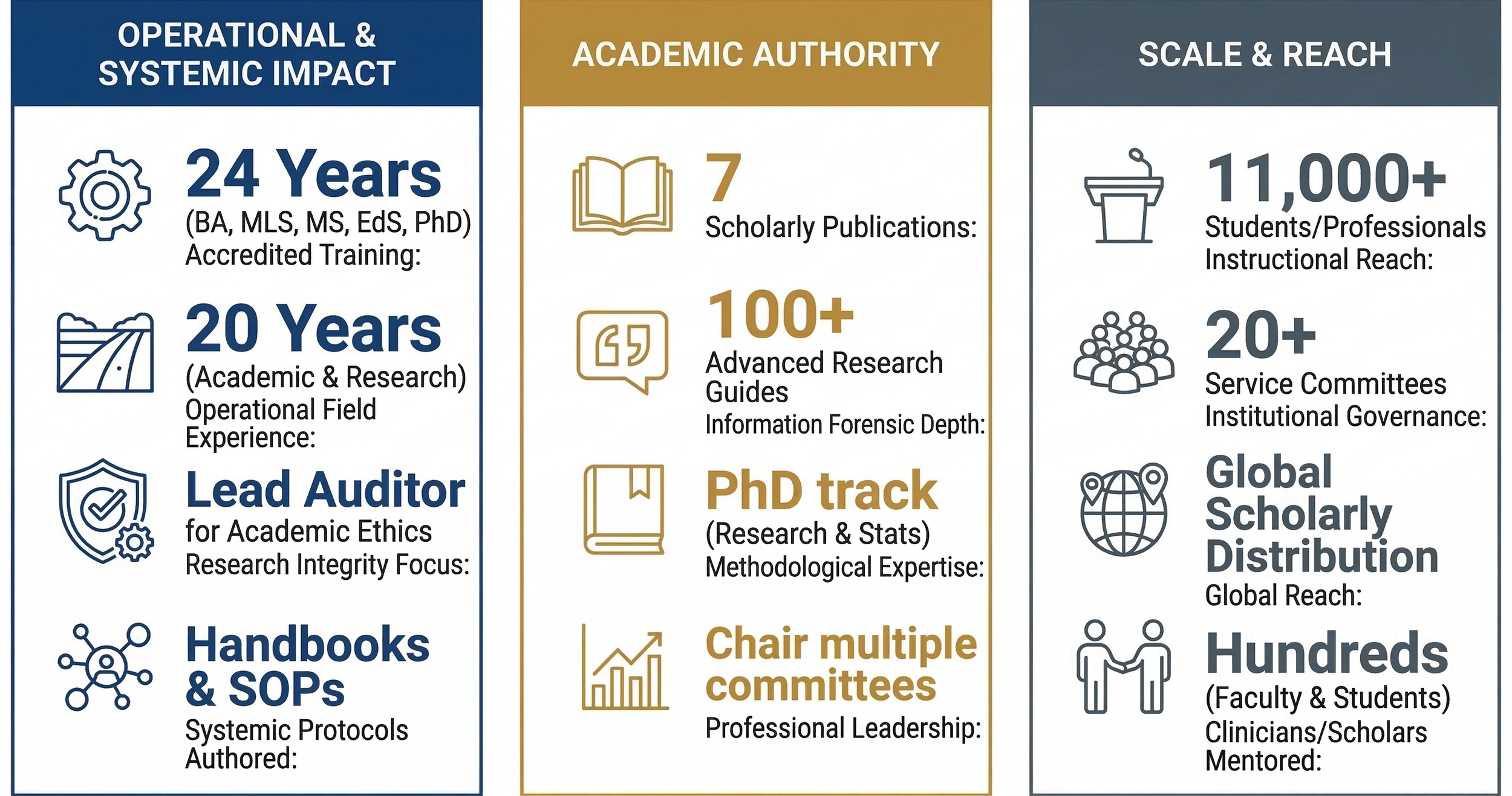 Her professional work centers on the systematic evaluation of evidence and the maintenance of scholarly standards within complex institutional frameworks.